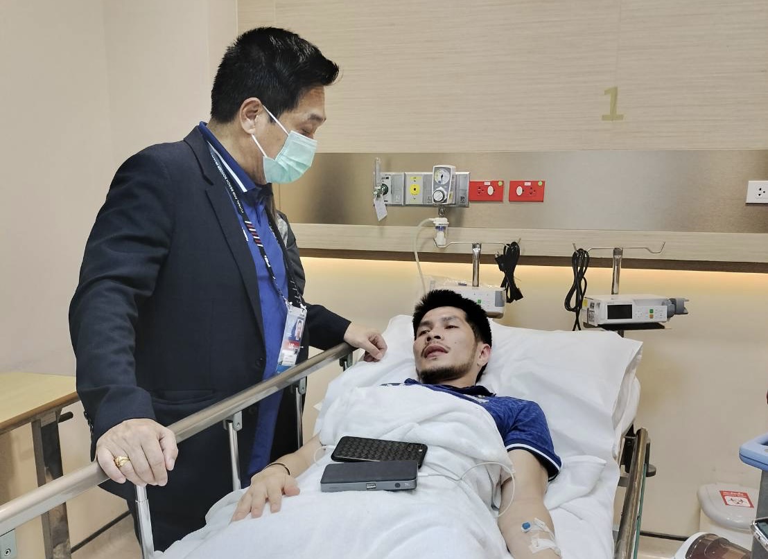 กรุงเทพฯ 15 ก.ย.65-อัพเดตอาการบาดเจ็บของ”กัปตันช้าง” กฤษดา วงษ์แก้ว กัปตันฟุตซอลทีมชาติไทย ที่ได้รับบาดเจ็บจากเกมที่ ทีมชาติไทย พ่าย อิหร่าน 2-3 ถูกนำตัวส่งโรงพยาบาลปิยะเวทในช่วงพักครึ่งแรก โดยทาง “บิ๊กป๋อม” อดิศักดิ์ เบ็ญจศิริวรรณ ประธานพัฒนาฟุตซอลไทย ได้เดินทางรับทราบอาการจากแพทย์