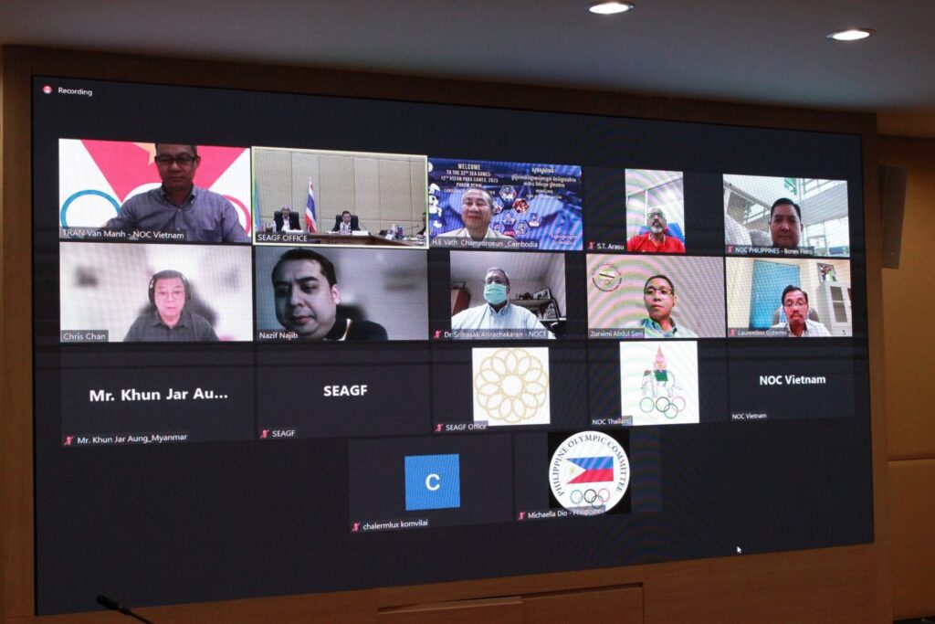 กรุงเทพฯ 15 ก.ย.65 .- การประชุม คณะทำงาน SEAGF Office Meeting (สมาคมสหพันธ์กีฬาเอเชียตะวันออกเฉียงใต้) เมื่อวันพฤหัสบดีที่15 กันยายน 2565 เวลา 14.00 น.โดยมนตรีกีฬาซีเกมส์ ประเทศไทย จำนวน 3 ท่าน ประกอบด้วย ดาโต๊ะซรี ชัยภักดิ์ศิริวัฒน์ ซีโอโอ เป็นประธานการประชุม, ศาสตราจารย์ (พิเศษ) เจริญ วรรธนะสิน และ นายแพทย์ วารินทร์ ตัณฑ์ศุภศิริ ประชุมร่วมกับ ชาติสมาชิก 11 ชาติ เพื่อสรุปจำนวนชนิดกีฬาที่กัมพูชาเป็นเจ้าภาพจัดการแข่งขันกีฬาซีเกมส์ ครั้งที่ 32 ระหว่างวันที่ 5-17 พฤษภาคม 2566 มีข้อสรุป กีฬาที่มีแข่งขันทั้งสิ้น จำนวน 37 ชนิดกีฬา มีชิงชัยถึง 608 เหรียญทอง เป็นจำนวนเหรียญทองสูงสุดตั้งแต่มีการแข่งขันกีฬาซีเกมส์