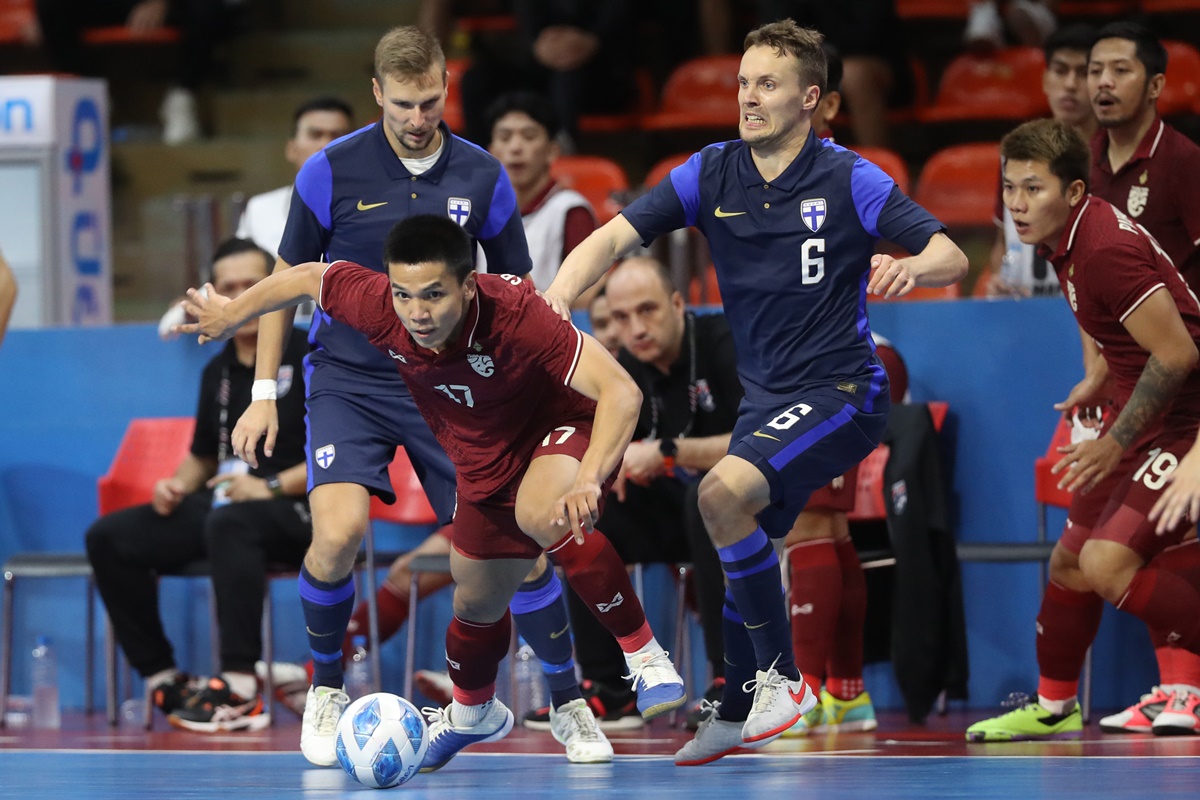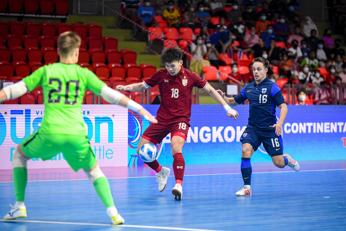 ศึกโต๊ะเล็ก “คอนติเนนทัล ฟุตซอล แชมเปียนชิพ ไทยแลนด์ 2022” ที่อินดอร์ สเตเดียม หัวหมาก วันที่ 16 กันยายน 2565 คู่ชิงที่ 3 ทีมชาติไทย อันดับ 20 ของโลก ที่แพ้ อิหร่าน 2-3 พบกับ ทีมชาติฟินแลนด์ อันดับ 18 ของโลก ดีกรีแชมป์สแกนดิเนเวีย 5 สมัย ที่แพ้ โมร็อกโก 1-4