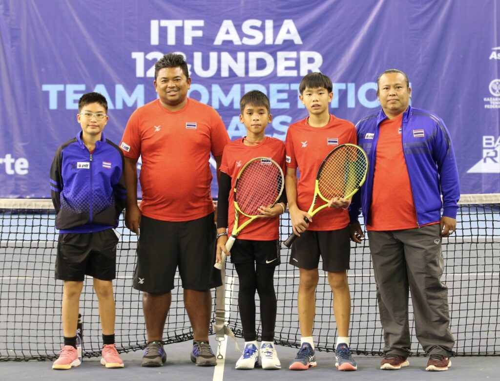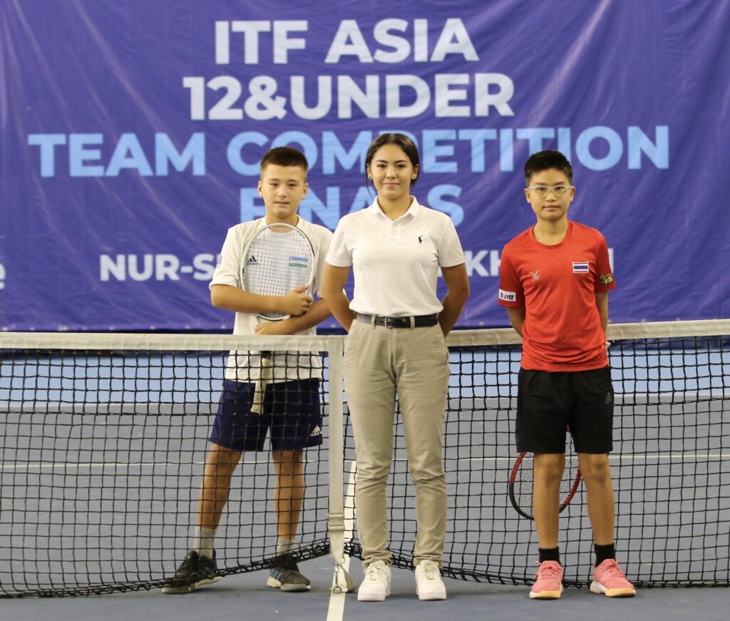 คาซัคสถาน 17 ก.ย.65-การแข่งขันเทนนิสชิงชนะเลิศแห่งเอเชีย ประเภททีม รุ่นอายุไม่เกิน 12 ปี รายการ “ไอทีเอฟ เอเชีย ทเวลฟ์ แอนด์อันเดอร์ ทีม คอมเพทติชั่น ไฟนอลส์ 2022” ที่เดาเล็ต เทนนิส เซ็นเตอร์ (สนามในร่ม) ณ กรุงนูร์-ซุลตัน ประเทศคาซัคสถาน เมื่อวันที่ 16 ก.ย. 2565 เป็นการแข่งขันนัดสุดท้ายในรอบพบกันหมดแต่ละสาย