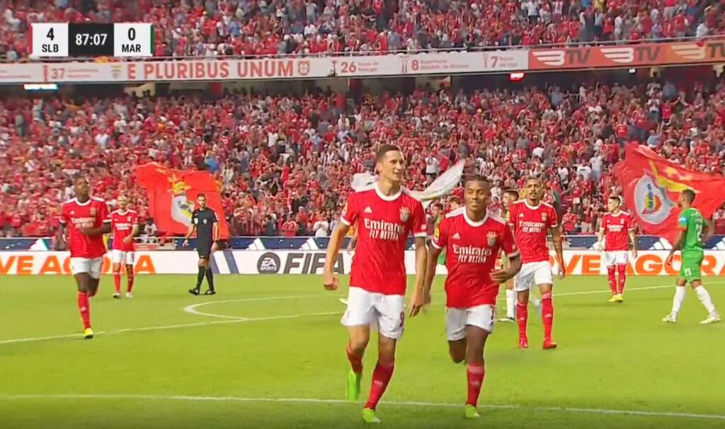 ฟุตบอลปรีไมราลีก โปรตุเกส นัดที่ 7 เบนฟิก้า เจ้าถิ่นเสื้อสีแดง พบ มาริติโม่ เกมนี้เจ้าถิ่น มายิง 5 ประตูรวดจาก ราฟา ซิลวา นาที 28, กอนซาโล่ รามอส นาที 47 จากนั้นนากที 64 รามอส มาทำประตูที่ 2 ของตัวเองในเกมนี้ช่วยให้ทีมนำ 3-0 เดวิด เนเรส นาที 82 และ ยูลีอาน ตรัคส์เลอร์ นาที 88 จบเกมเบนฟิก้า ชนะ มาริติโม่ 5-0 นำจ่าฝูง แข่ง 7 นัด ชนะรวดมี 21 คะแนน ส่วน มาริติโม่ รั้งอันดับ 18 แข่ง 7 นัดยังไม่ชนะใคร