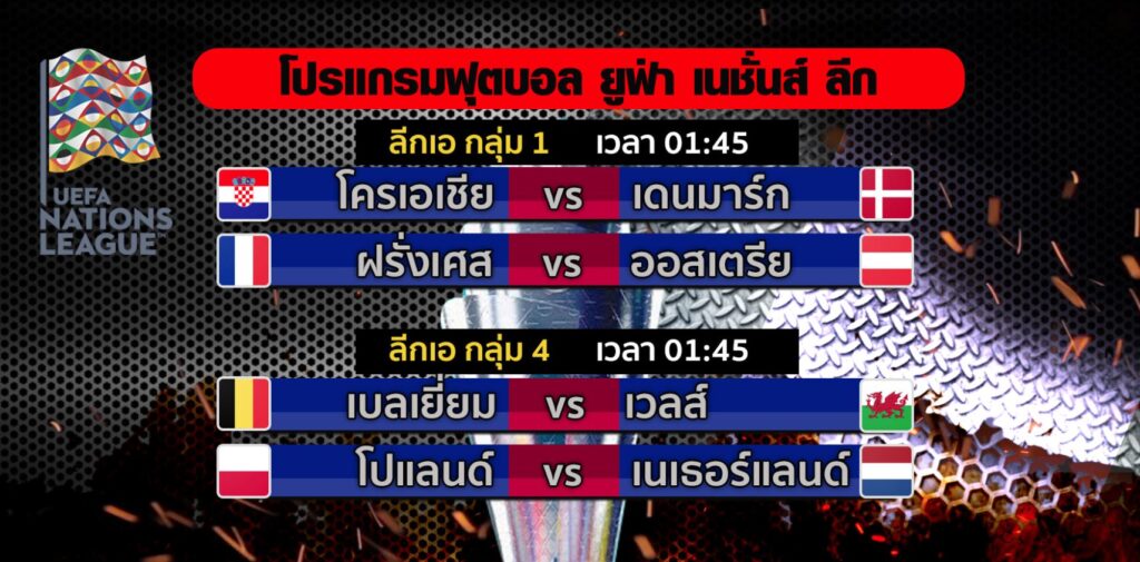 ฟุตบอลยูฟ่า เนชั่นส์ ลีก เอ กลุ่ม 1 นัดที่ 5 คู่ที่น่าสนใจคืนนี้ เวลา 01.45 น. ฝรั่งเศส เปิดบ้านพบ ออสเตรีย ทีมตราไก่ยังไม่ชนะใครในเกมเนชั่นส์ลีก รั้งบ๊วยของกลุ่ม สภาพมีผู้เล่นเจ็บหลายราย ต้องถอนตัวออกไป อูโก้ โยริส กัปตันทีม, คาริม เบนเซม่า, ปอล ป็อกบา, เอ็นโกโล่ ก็องเต้ ไม่อยู่ในทีมชุดนี้ อย่างไรก็ตาม แนวรับยังมี ฌูลส์ กุนเด้, ราฟาแอล วาราน, แดนกลางมี โอเรเลียง ชูอาเมนี่, เอดูอาร์โด้ กามาวินก้า ส่วน 3 กองหน้าใช้ อองตวน กรีซมันน์, โอลิวิเย่ร์ ชิรูด์, คิลิยัน เอ็มบัปเป้ ที่แม้จะมีปัญหาเรื่องการไม่ขอถ่ายรูปรวมกับทีมชาติฝรั่งเศส แต่ยังพร้อมลงสนาม