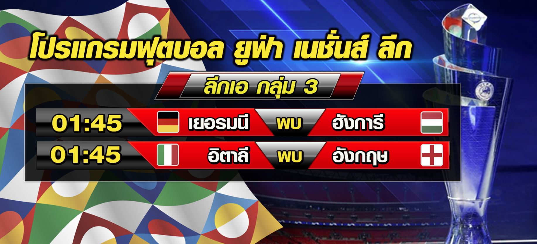 ฟุตบอลยูฟ่า เนชั่นส์ ลีก คู่ที่น่าสนใจคืนนี้ ลีก A กลุ่ม 3 อิตาลี อันดับ 3 ของกลุ่ม จะเปิดซาน ซิโร พบอังกฤษ บ๊วยของกลุ่ม ในเวลา 01.45 น. อัซซูรีจะไม่มี ลอเรนโซ่ เปลเลกรินี, มาร์โก แวร์รัตติ, และมัตเตโอ โปลิตาโน ที่ถอนตัวออกจากทีมไปแล้วโรแบร์โต้ มันชินี เทรนเนอร์ จะใช้ระบบ 3-5-2 วางแนวรับยังคงนำมาโดย เลโอนาร์โด้ โบนุชชี, แดนกลางมี ซานโดร โตนาลี, จอร์จินโญ, นิโกโล บาเรลลา คู่หน้าใช้ จาโคโม ราสปาโดรี กับ ชิโร อิมโมบิเล