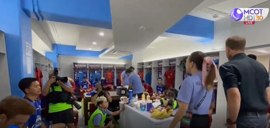 สำหรับเกมนี้ทีมช้างศึกใส่ชุดสีแดง มาโน โพลกิ้ง กุนซือทีมชาติไทย เปลี่ยนแปลงตัวผู้เล่นหลายตำแหน่งจากเกมที่แล้วถึง 8 คน โดยมีตัวเก่าจากเกมที่แล้วเหลืออยู่ในชุดนี้เพียง 3 คน คือ กฤษดา กาแมน, ธีราทร บุญมาทัน และสุภโชค สารชาติ ซึ่งวันนี้ธีราทร บุญมาทัน เป็นกัปตันทีม แทน “เจ” ชนาธิป สรงกระสินธ์ ที่ได้รับบาดเจ็บ ส่วนหน้าเป้าวันนี้ใช้ ศุภณัฏฐ์ เหมือนตา ลงล่าตาข่าย