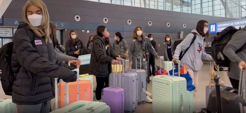 โปแลนด์ 26 ก.ย. – ทีมนักตบลูกยางสาวไทย เดินทางถึงโปแลนด์ เรียบร้อยแล้ว พร้อมทำศึกวอลเลย์บอลหญิงชิงแชมป์โลก 2022 ในรอบแรก อีก 4 นัดที่เหลือ