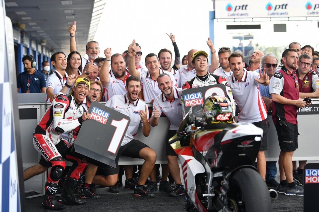 “ก้อง” สมเกียรติ จันทรา นักบิดไทยจากอิเดมิตสึ ฮอนด้า ทีมเอเชียหมายเลข 35 จากโครงการ“ฮอนด้า เรซ ทู เดอะ ดรีม” สร้างประวัติศาสตร์ให้วงการมอเตอร์สปอร์ตไทยอีกครั้ง สามารถทำเวลาได้เร็วที่สุดในบรรดานักแข่ง 17 คน ในรอบควอลิฟาย 2 ด้วยเวลาต่อรอบ 1 นาที 35.625 วินาที ทำให้ก้องเป็นนักบิดไทยคนแรกที่คว้าตำแหน่งโพลโพสิชั่นในการแข่งขันรุ่นโมโตทูได้สำเร็จ มีลุ้นคว้าแชมป์โมโตทูเป็นสนามที่ 2 อย่างเต็มตัวในโฮมเรซ ท่ามกลางบรรยากาศกองเชียร์ชาวไทยเข้ามาให้กำลังใจก้องแบบแน่นขนัด ทั้งบนอัฒจันทร์แกรนด์ สแตนด์ และอัฒจันทร์จันทราสแตนด์ ที่จัดมาให้กับแฟนคลับของสมเกียรติโดยเฉพาะ ซึ่งเป็นนักบิดไทยคนแรกด้วยที่มีสแตนด์ของตัวเอง