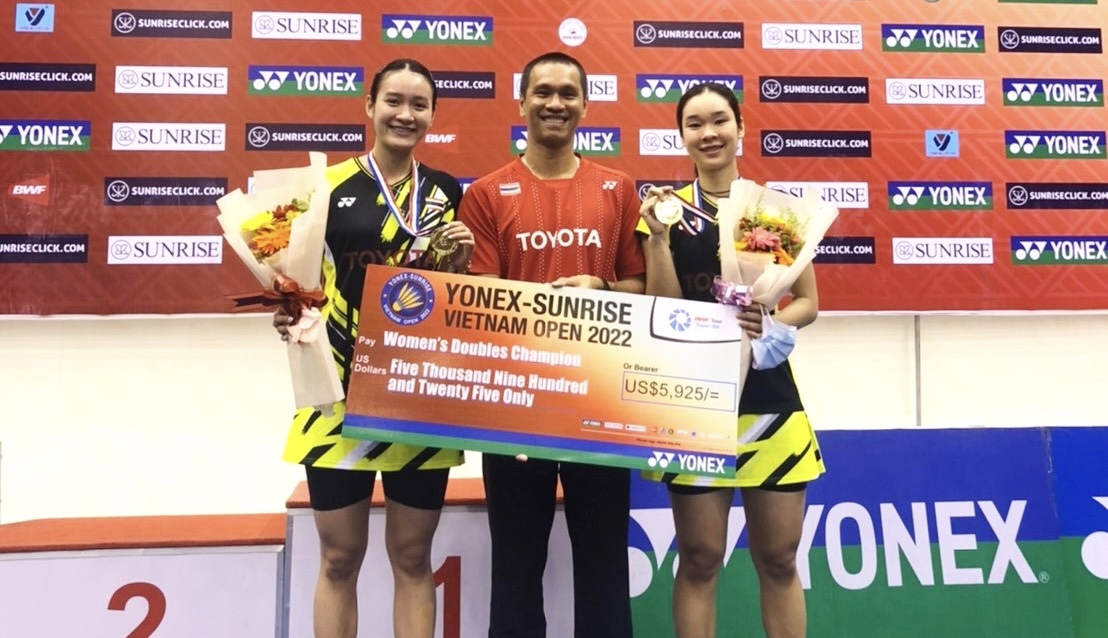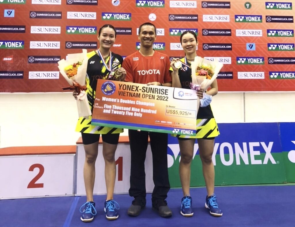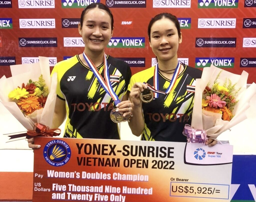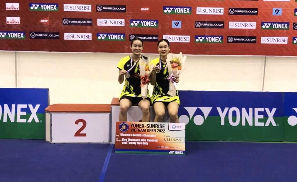 เวียดนาม 2 ต.ค.65-การแข่งขันแบดมินตันรายการ “โยเน็กซ์ ซันไรท์ เวียดนาม โอเพ่น 2022” ทัวร์นาเมนต์ระดับเวิลด์ทัวร์ 100 ที่นครโฮจิมินห์ ประเทศเวียดนาม เมื่อวันอาทิตย์ที่ 2 ต.ค.65 ที่ผ่านมา เป็นการแข่งขันในรอบชิงชนะเลิศ โดยมีนักกีฬาแบดมินตันไทยทำผลงานผ่านเข้ามาถึงในรอบนี้ได้สำเร็จในประเภทหญิงคู่ “มูนา” เบญญาภา กับ “อันนา” นันทกาญจน์ เอี่ยมสอาดประเภทหญิงคู่รอบชิงชนะเลิศ “มูนา” เบญญาภา กับ “อันนา” นันทกาญจน์ เอี่ยมสอาด คู่มือวาง 1 ของรายการ คู่มืออันดับ 24 ของโลก เอาชนะ ฟาเบียน่า ดาวี่พูจิ กูซูมา กับ อเมเลีย คาฮาย่า ปราติวี่ คู่มือวาง 2 ของรายการ คู่มืออันดับ 33 ของโลกจากอินโดนีเซีย ไป 2- 0 เกม 21-16 , 27 -25 ใช้เวลาแข่งขัน 53 นาที “มูนา” เบญญาภา กับ”อันนา” นันทกาญจน์ คว้าแชมป์พร้อมรับเงินรางวัล 5,925 เหรียญสหรัฐ หรือประมาณ 222,000 บาท ส่วนรองแชมป์ ฟาเบียน่า ดาวี่พูจิ กูซูมา กับ อเมเลีย คาฮาย่า ปราติวี่ รับเงินรางวัล 2,850 เหรียญสหรัฐ หรือประมาณ106,000 บาท