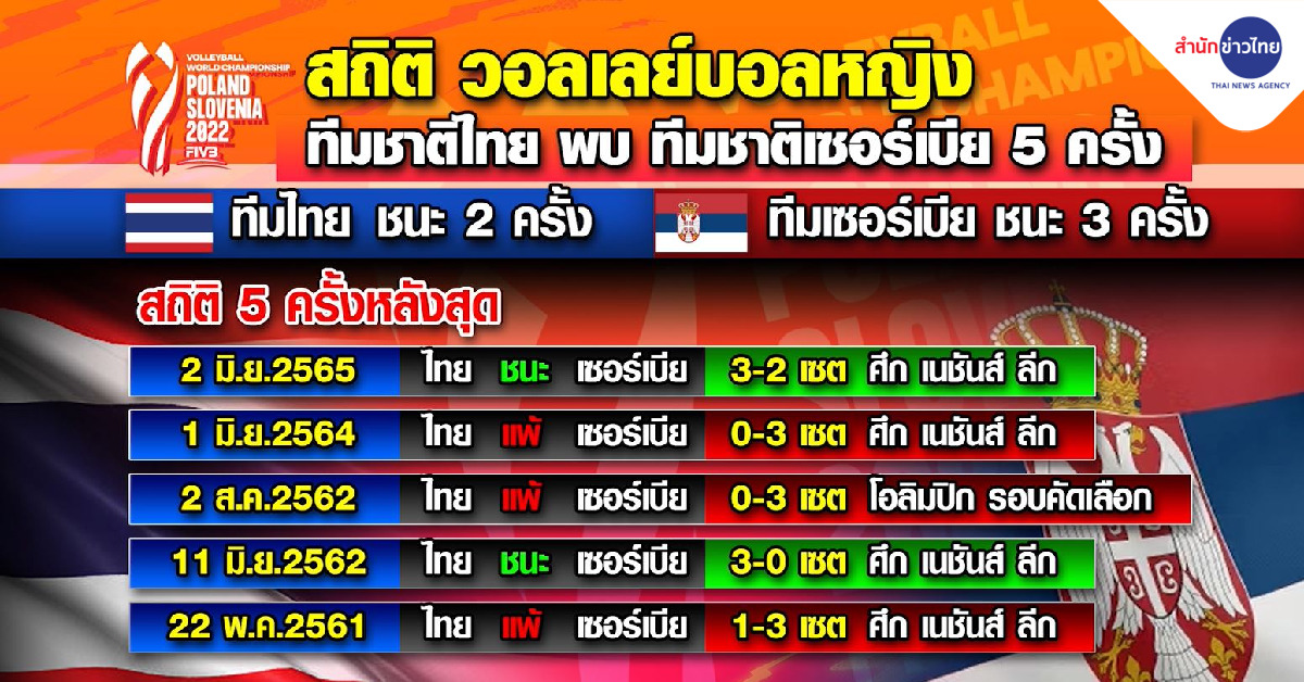 2 มิ.ย.2565 ศึก เนชันส์ ลีก : ไทย ชนะ เซอร์เบีย 3-2 เซต