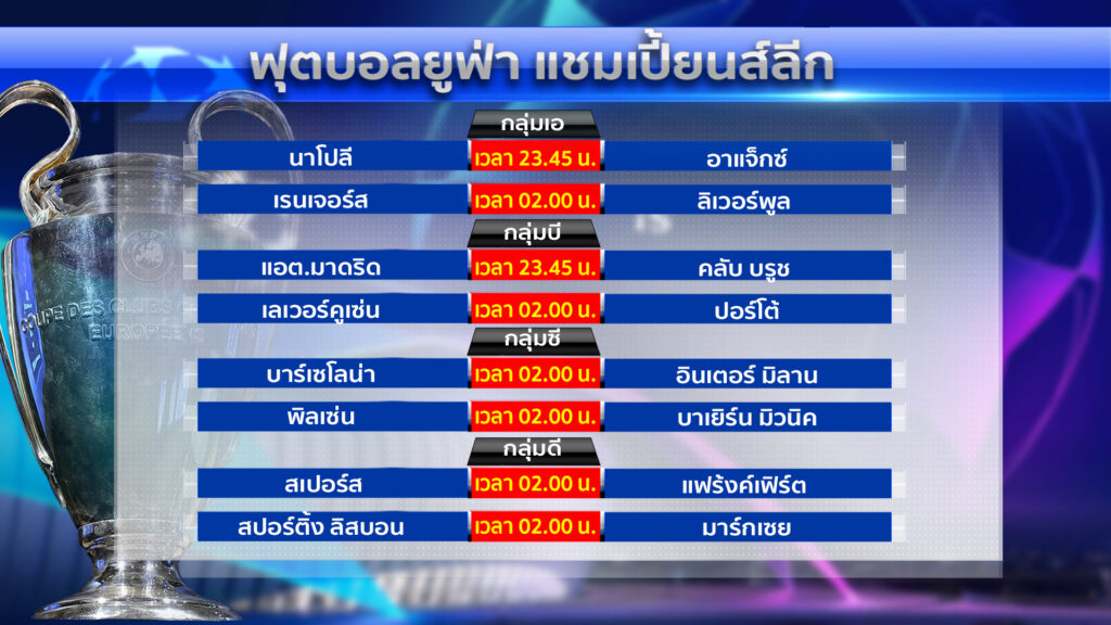 ฟุตบอลยูฟ่า แชมเปียนส์ลีก คู่ที่น่าสนใจคืนนี้เกมกลุ่มเอ เวลา 02.00 น. เรนเจอร์ส อันดับ 4 จากสกอตแลนด์ เตะ 3 นัดยังไม่มีคะแนน พบ ลิเวอร์พูล อันดับ 2 จากอังกฤษ ที่เตะ 3 นัดชนะ 2 แพ้ 1 มี 6 แต้ม ความพร้อมของเจ้าถิ่น