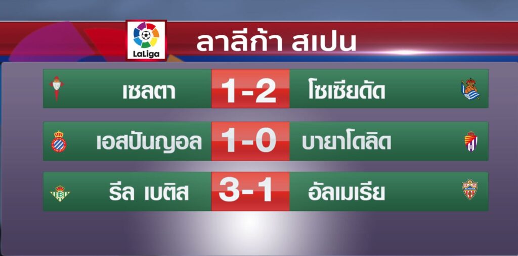 ผลฟุตบอล ลา ลีกา สเปน เกมเอล กลาซิโก เรอัล มาดริด แชมป์เก่า เปิดซานติอาโก เบร์นาเบว ชนะ บาร์เซโลนา คู่ปรับตลอดกาล 3-1 เกมนี้ “ราชันชุดขาว” ได้ประตูจาก คาริม เบนเซมา นาทีที่ 12 , เฟเดริโก วัลเวร์เด นาทีที่ 35 และโรดรีโก ยิงจุดโทษ ในช่วงทดเวลาการแข่งขันนาทีที่ 90+1 ส่วนบาร์ซ่า ได้ประตูจาก เฟร์ราน ตอร์เรส นาทีที่ 83 จบเกมมาดริดเก็บเพิ่มเป็น 25 คะแนนจาก 9 นัด นำเป็นจ่าฝูง ส่วน บาร์ซ่า แพ้ในลีกเป็นเกมแรกของซีซั่นนี้ มี 22 คะแนน หล่นมาอยู่อันดับ 2 . – สำนักข่าวไทย