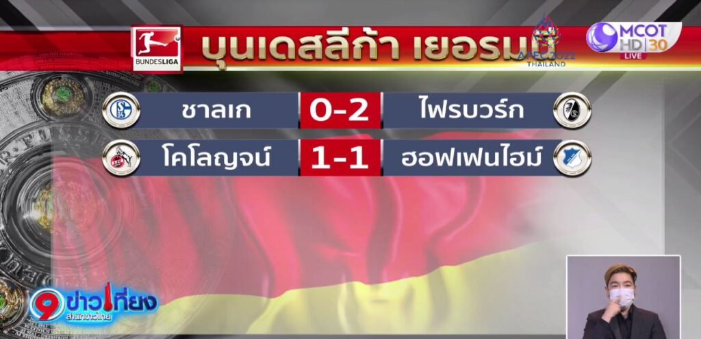 ฟุตบอลบุนเดสลีกา เยอรมนี อูนิโอน เบอร์ลิน ทีมรองจ่าฝูง เปิดรังสตาดิโอน อัน แดร์ อัลเทน ฟอร์สเตอร์ไร รับการมาเยือน โบรุสเซีย มึนเชนกลัดบัค เกมครึ่งแรกเป็น “สิงห์หนุ่ม” ทีมเยือน ได้ประตูขึ้นนำก่อน 1-0 จาก นิโก เอลเวดี ในนาทีที่ 33 เข้าสู่ครึ่งหลัง เจ้าถิ่นเดินเกมบุกหนัก มาได้ประตูตีเสมอ 1-1 ในนาทีที่ 79 จาก เควิน เบห์เรนส์ ก่อนที่ ดานิลโญ โดกีห์ จะสวมบทฮีโร่ ทำประตูชัยในนาทีที่ 90+7 ช่วยให้ อูนิโอน เบอร์ลิน เปิดบ้านเฉือนชนะ 2-1 เก็บเพิ่มเป็น 26 คะแนนจาก 12 นัด แซง บาเยิร์น มิวนิค กลับขึ้นไปรั้งจ่าฝูง นำเสือใต้ อยู่ 1 แต้ม ส่วน กลัดบัค เตะ 12 นัดมี 16 คะแนน อยู่อันดับ 10 ของตาราง
