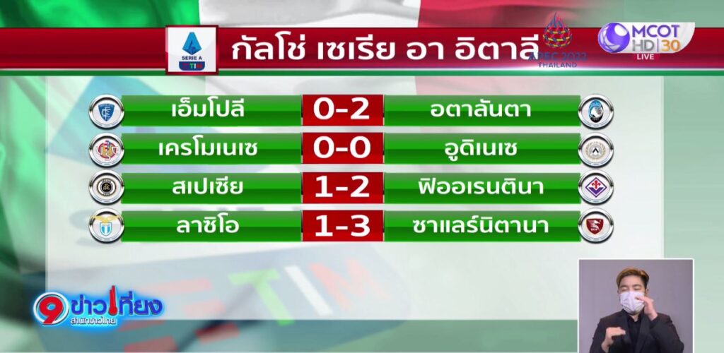 ศึกฟุตบอลกัลโช เซเรีย อา อิตาลี โตริโน เปิดรังสตาดิโอ โอลิมปิโก ในนครตูริน เอาชนะ เอซี มิลาน 2-1 โดยเกมนี้ “กระทิงหิน”ได้ประตูขึ้นนำก่อน 2-0 โดยได้จาก คอฟฟี ฌิฌี นาทีที่ 35 และ อเล็กเซย์ มิรานชุค นาทีที่ 37 ครึ่งหลัง นาทีที่ 67 “ปีศาจแดงดำ” ยิงตีตื้นเป็น 1-2 จากการยิงของ จูเนียร์ เมสซิอาส จบเกม โตริโน เก็บเพิ่มเป็น 17 แต้มจาก 12 นัด อยู่อันดับ 9 ส่วน เอซี มิลาน เตะ 12 นัดมี 26 คะแนน หล่นจากรองจ่าฝูงลงมาอยู่ที่ 3 ของตาราง ตามหลัง นาโปลี ทีมจ่าฝูง 6 แต้ม