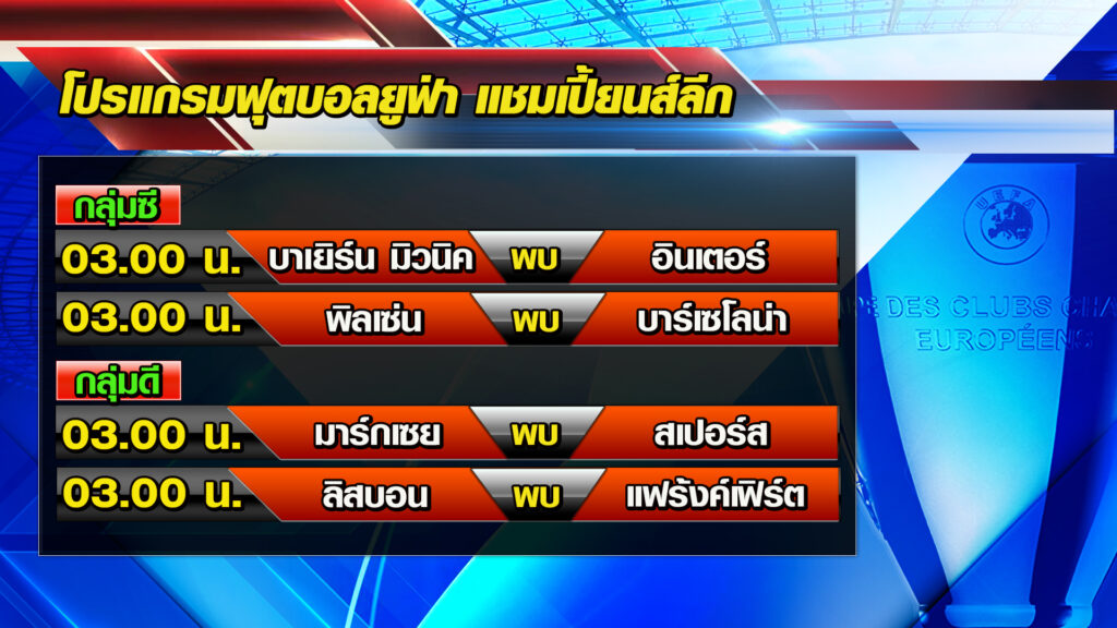 ฟุตบอลยูฟ่า แชมเปียนส์ ลีก คืนนี้ คู่ที่น่าสนใจ กลุ่มดี ยังมีลุ้นเข้ารอบทุกทีม โอลิมปิก มาร์กเซย ทีมอันดับ 4 จากฝรั่งเศส เปิดบ้านพบกับท็อตแน่ม ฮอตสเปอร์ จ่าฝูงของกลุ่มจากอังกฤษ ในเวลา 03.00 น. เกมนี้สเปอร์สต้องการเพียงผลเสมอก็จะเข้ารอบน็อกเอาท์ทันที ความพร้อมของ มาร์กเซย ไม่ชนะมา 4 เกมแล้ว แต่เกมนี้จะได้ ซามูแอล ชิโชต์ พ้นโทษแบนในลีกกลับมา ส่วน เอริก ไบยี่ ยังเจ็บลงสนามไม่ได้ แนวรับมี เซอัด โคลาซินัช ตรงกลางมี จอร์แดน แวร์กตูต์ คุมเกม แนวรุกใช้ มัตเตโอ เก็นดูซี่, และอเล็กซิส ซานเชซ