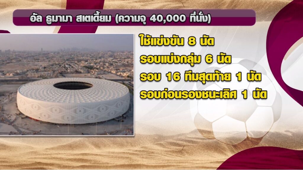 7 พ.ย. – สังเวียนแข้งฟุตบอลโลก 2022 วันนี้ไปดู เอดดูเคชัน ซิตี สเตเดียม และ อัล ธูมามา สเตเดียม ที่จะใช้ในศึกฟุตบอลโลกครั้งนี้