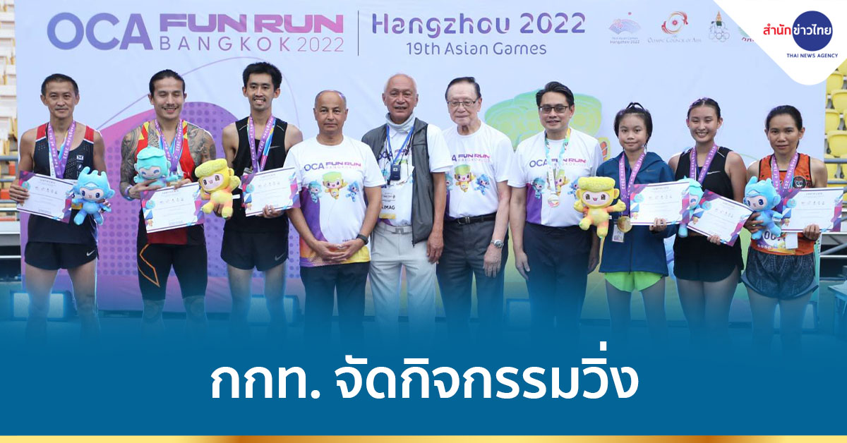 กทม. 13 พ.ย.- กกท. จัดกิจกรรมวิ่ง “OCA Fun Run Bangkok 2022” เพื่อประกาศความพร้อมของการเป็นเจ้าภาพจัดการแข่งขันกีฬาเอเชียนอินดอร์และมาร์เชียลอาตส์เกมส์ ครั้งที่ 6 ที่ประเทศไทย