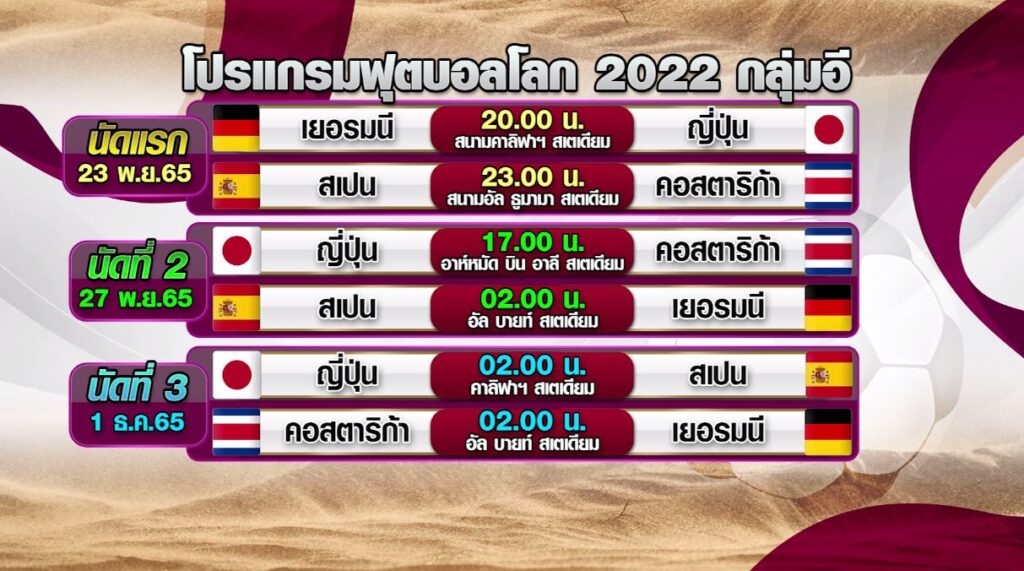 15 พ.ย. – ฟุตบอลโลก 2022 ใกล้เปิดฉาก หลังได้ดูความพร้อมของกลุ่ม เอ บี ซี และดี ไปแล้ว วันนี้ไปดูความพร้อมของในกลุ่มอี