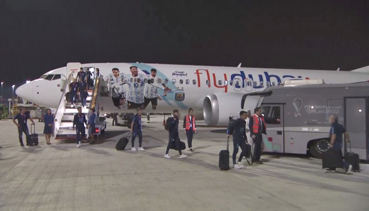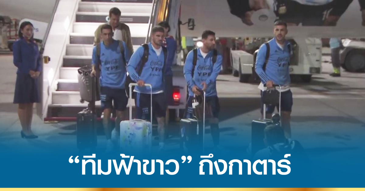 “ทีมฟ้าขาว” อาร์เจนตินา อีกหนึ่งทีมเต็งในศึกฟุตบอลโลก 2022 นำโดย ลิโอเนล เมสซี นักเตะซูเปอร์สตาร์กัปตันทีมจากเปแอสเช ได้เดินทางจากกรุงอาบูดาบี สหรัฐอาหรับเอมิเรตส์ ถึงกรุงโดฮา ประเทศกาตาร์ หลังจากที่เพิ่งโชว์ฟอร์มยอดเยี่ยม ถล่ม ยูเออี 5-0 ในเกมอุ่นเครื่องนัดสุดท้ายก่อนเริ่มทัวร์นาเมนต์ พร้อมทำสถิติไม่แพ้เป็นนัดที่ 36 โดย อาร์เจนตินา ที่อยู่ในกลุ่มซี จะลงสนามนัดแรก พบ ซาอุดีอาระเบีย ในวันที่ 22 พฤศจิกายนนี้