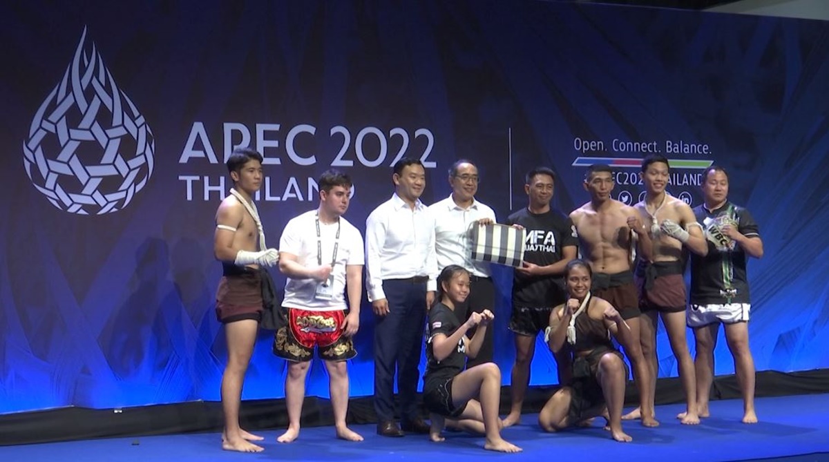 ร.ท.สมบัติ บัญชาเมฆ หรือ “บัวขาว บัญชาเมฆ” นักมวยไทยชื่อดัง พร้อมด้วย “ครูดิน” นายวิทวัส ค้าสม ครูแม่ไม้มวยไทยค่ายลานนาไฟท์ติ้งมวยไทย และ “น้องไออุ่น” แชมป์เยาวชนหญิงทีมชาติไทย ร่วมสาธิตการชกมวยไทย และกิจกรรมเวิร์กช็อป ที่ศูนย์สื่อมวลชน ภายในศูนย์การประชุมแห่งชาติสิริกิติ์ สถานที่จัดประชุมผู้นำเขตเศรษฐกิจเอเปค ต่อหน้าสื่อไทยและสื่อต่างประเทศ เพื่อเป็นการประชาสัมพันธ์ศิลปะมวยไทย โดยนายธานี แสงรัตน์ เอกอัครราชทูต ณ กรุงวอชิงตัน ดีซี ปฏิบัติหน้าที่โฆษกกระทรวงการต่างประเทศ เข้าร่วมกิจกรรมนี้