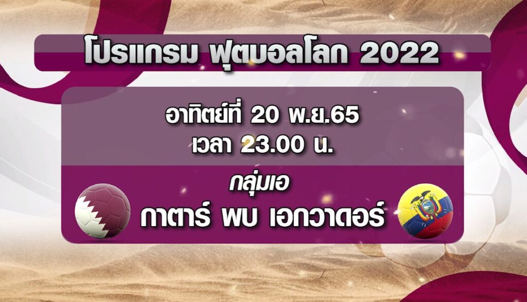โปรแกรมการแข่งขันนัดเปิดสนาม รอบแรก กลุ่มเอ นัดแรก 23.00 น. กาตาร์ เจ้าภาพ อันดับ 50 ของโลก พบ เอกวาดอร์ อันดับ 44 ความพร้อมล่าสุด