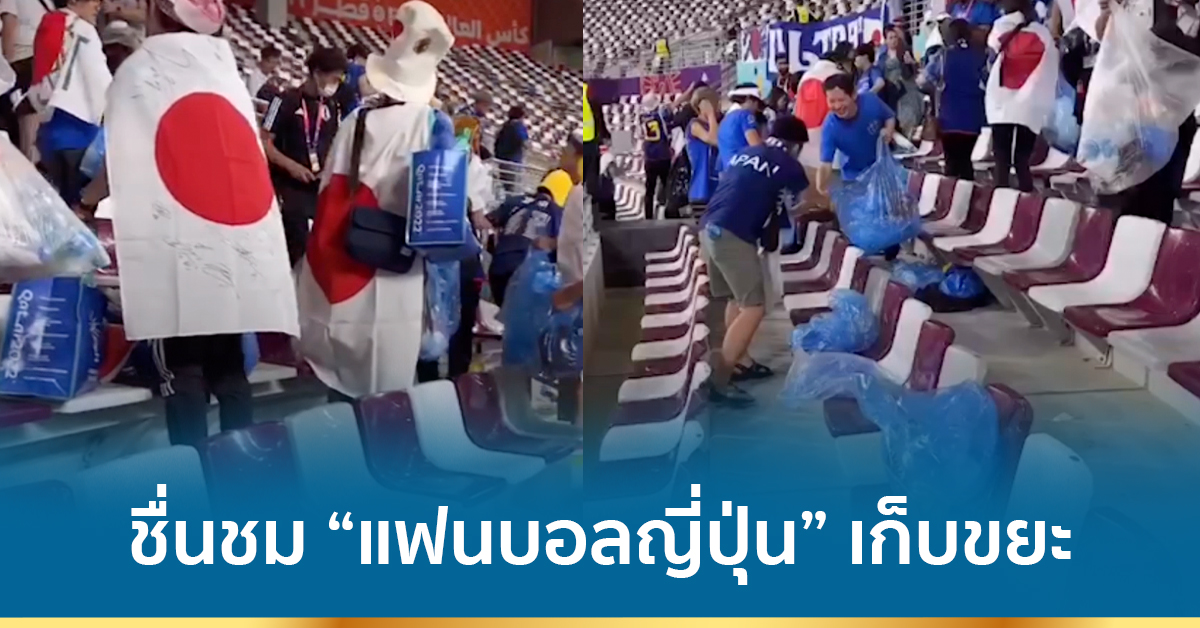 หลังจาก ทีมชาติญี่ปุ่น เอาชนะ แชมป์โลก 4 สมัยอย่าง เยอรมนี 2-1 ระหว่างที่นักเตะกำลังเฉลิมฉลองชัยชนะในสนามแข่ง แฟนบอลชาวญี่ปุ่นบนอัฒจันทร์ที่อยู่ในสนามเป็นกลุ่มสุดท้าย ช่วยกันเดินเก็บขยะภายในสนามคาห์ลิฟา อินเตอร์เนชั่นแนล สเตเดียม และได้รับเสียงชื่นชมไปทั่วโลก ซึ่งการเก็บขยะของแฟนบอลญี่ปุ่น เรียกได้ว่าเป็นวัฒนธรรม “ความสะอาด” ที่เป็นเอกลักษณ์ของชาวญี่ปุ่น ถูกปลูกฝังมาตั้งแต่เด็ก เป็นพฤติกรรมพื้นฐานที่สอนในโรงเรียน โดยเด็กๆ จะทำความสะอาดห้องเรียนและโถงทางเดินในโรงเรียน ก่อนกลับบ้านหลังเรียนเสร็จ