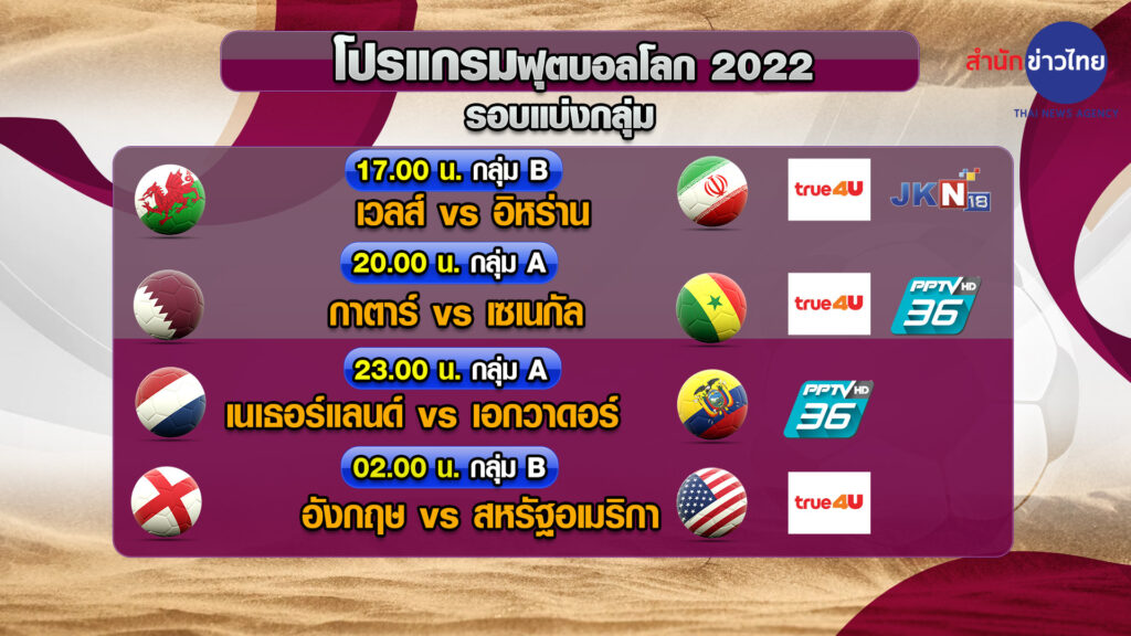 โปรแกรมฟุตบอลโลก 2022 วันนี้ (25 พ.ย.)