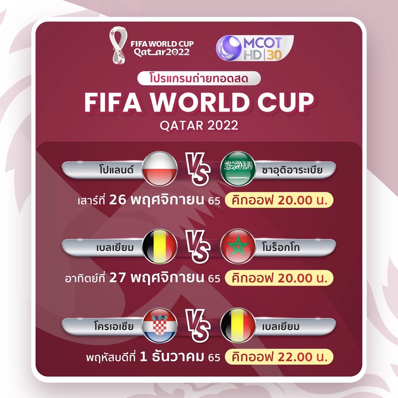 เสาร์ 26 พ.ย. 65 โปแลนด์ พบ ซาอุดีอาระเบีย คิกออฟ 20.00 น.