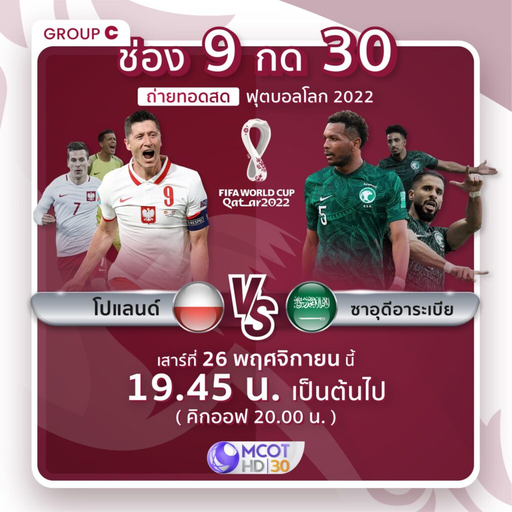 ⚽️ คมจัด! ชัดสุด! #ฟุตบอลโลก2022 ถ่ายทอดสดโปแลนด์ ดวล ซาอุดีอาระเบีย วันเสาร์ 26 พ.ย.65 ชมสดแบบ HD ผ่านหน้าจอช่อง 9 กด 30 ตั้งแต่เวลา 19.45 น. #ช่อง9กด30 #9MCOTHD #WorldcupQatar2022 ห้ามพลาด!!