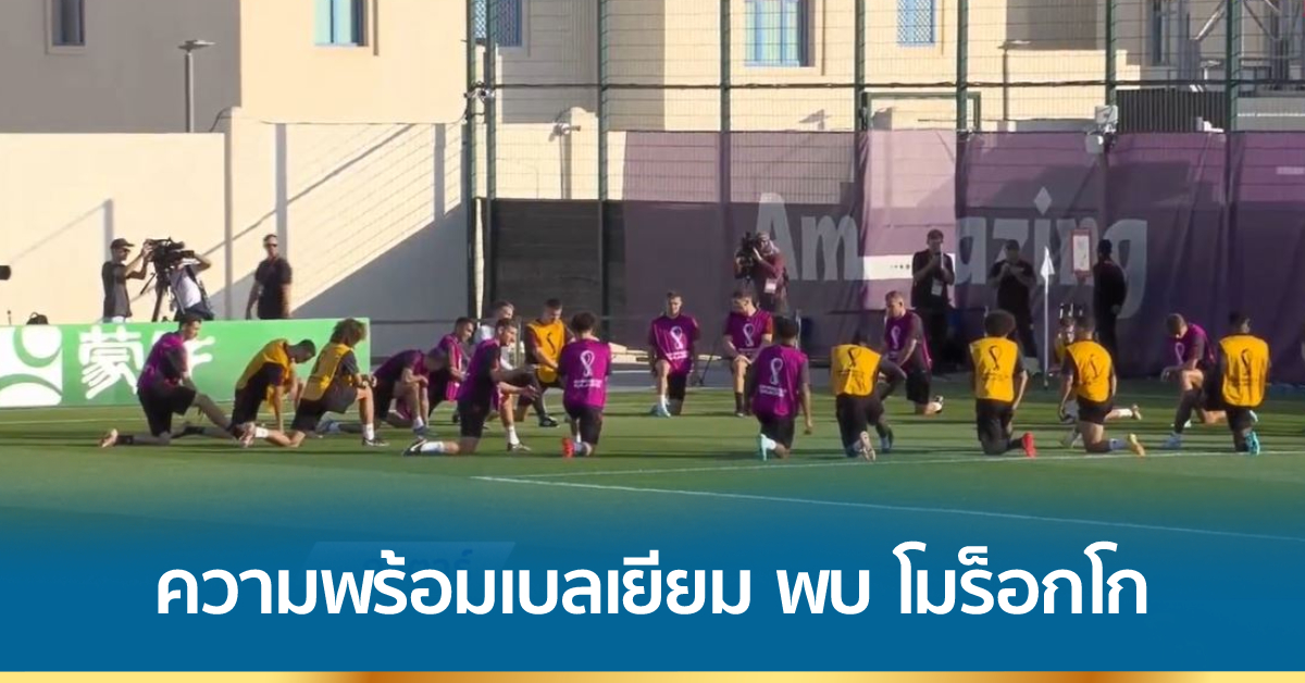ความพร้อมของคู่ที่ช่อง 9 MCOTHD หมายเลข 30 ถ่ายทอดสด เวลา 20.00 น. กลุ่มเอฟ นัดที่ 2 เบลเยียม ที่มี 3 คะแนน พบโมร็อกโก ที่มี 1 คะแนน ที่สนามอัล ธูมาม่า สเตเดี้ยม