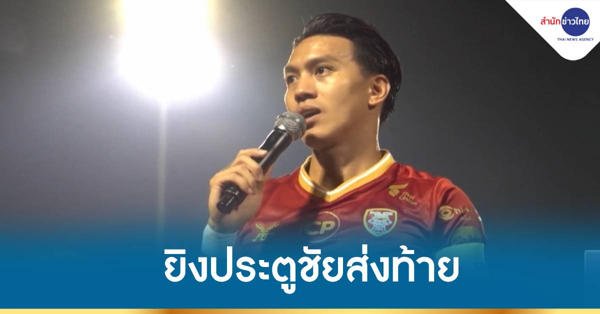 สนามบุณยะจินดา 28 พ.ย.-“ลีซอ” ธีรเทพ วิโนทัย ยิงประตูชัย ก่อนแขวนสตั๊ด ให้โปลิศเทโร เอฟซี เปิดบ้านเฉือนชนะ นครราชสีมา มาสด้า เอฟซี ในเกมอำลาสนาม ศึกไทยลีก