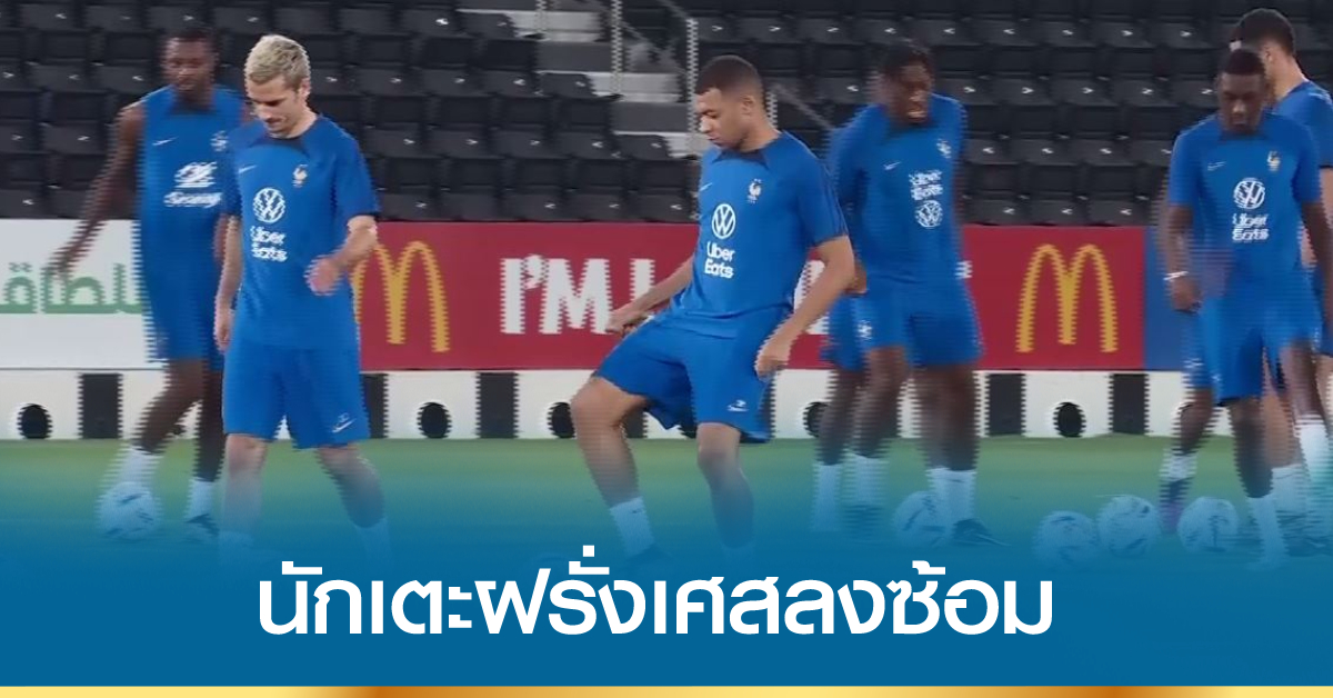 กาตาร์ 9 ธ.ค. – นักเตะทีมชาติฝรั่งเศสลงฝึกซ้อม เตรียมพร้อมก่อนพบ “สิงโตคำราม” อังกฤษ ในรอบ 8 ทีมสุดท้าย ฟุตบอลโลก 2022