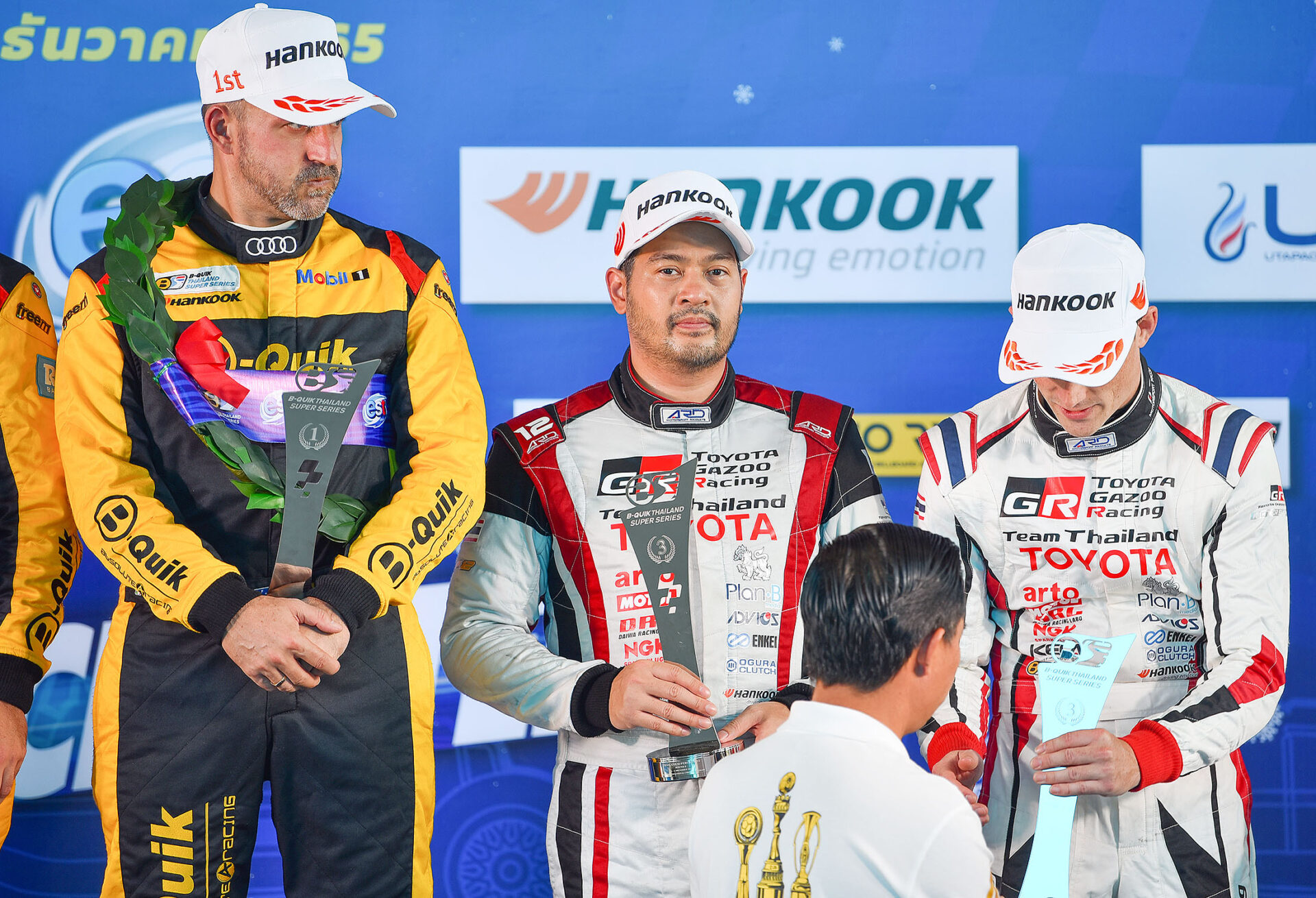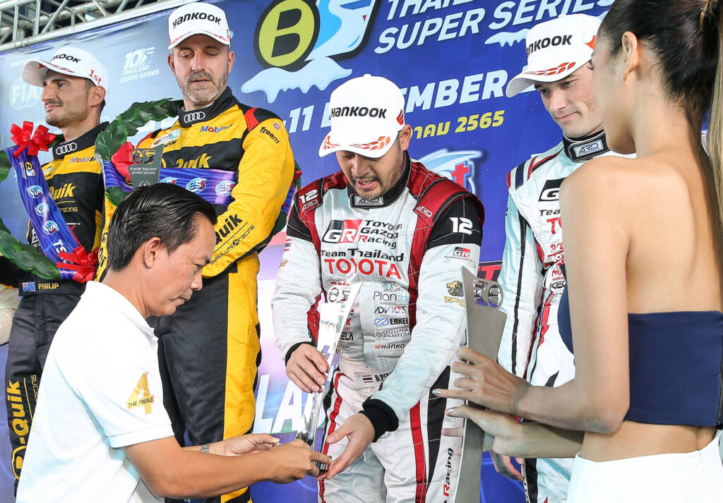 บุรีรัมย์ 11 ธ.ค.65-รถยนต์ทางเรียบระดับนานาชาติ ไทยแลนด์ ซูเปอร์ซีรีส์ สองเรซสุดท้ายของฤดูกาล ในสนามที่เจ็ดและสนามที่แปด ที่ ช้าง อินเตอร์เนชั่นแนล เซอร์กิต จังหวัดบุรีรัมย์ รุ่นไทยแลนด์ ซูเปอร์คาร์ จีที 3 แข่งขันกัน 60 นาทีกับอีก 1 รอบ ด้วยรถในพิกัด เอฟไอเอ จีที3 จากโรงงานผู้ผลิตเต็มรูปแบบ “ต๊อด” ปิติ ภิรมย์ภักดี นักขับชาวไทยและ รีด ฮาร์เกอร์ เพื่อนร่วมทีมจากนิวซีแลนด์ จากทีมโตโยต้า กาซู เรซซิ่ง ทีม ไทยแลนด์ หมายเลข 12 ควบรถเลกซัสอาร์ซีเอฟ จีที 3 เข้าเส้นชัยอันดับสามโอเวอร์ออลด้วยเวลา 1 ชั่วโมง 2 นาที 35.680 วินาที และเป็นอันดับสองของรุ่นโปรแอมอีกด้วย