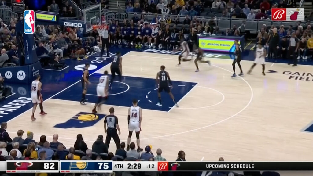 บาสเกตบอลเอ็นบี สหรัฐ อินเดียนา เพเซอร์ส ในชุดสีน้ำเงิน เปิดเกนบริดส์ ฟีลด์เฮาส์ พบกับไมอามี ฮีต เกมนี้ทีมเยือน ไมอามี ฮีต ได้ฟอร์มของ แบม อเดบาโย ทำ 22 แต้ม 17 รีบาวด์ และจิมมี บัตเลอร์ ทำแต้ม 7 แต้มรวดในช่วงท้ายของควอเตอร์ที่ 4 รวมทำ 20 แต้ม ช่วยให้ทีมบุกเอาชนะไปได้ 87-82 คะแนน เพิ่มสถิติ ชนะ 13 แพ้ 15 รั้งอันดับ 10 สายตะวันออก