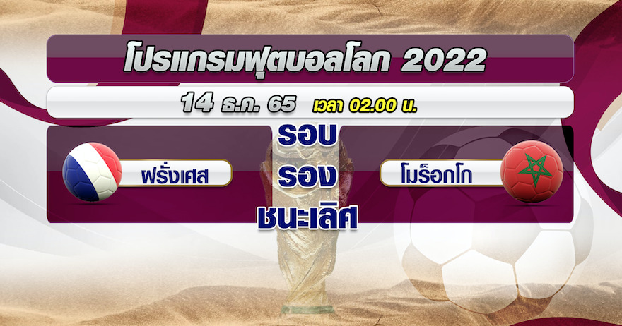 ส่วนโปรแกรมฟุตบอลโลก 2022 รอบรองชนะเลิศ อีกคู่ในคืนวันพรุ่งนี้ เวลา 02.00 น. ฝรั่งเศส แชมป์เก่า – โมร็อกโก ที่อัล บายท์ สเตเดียม