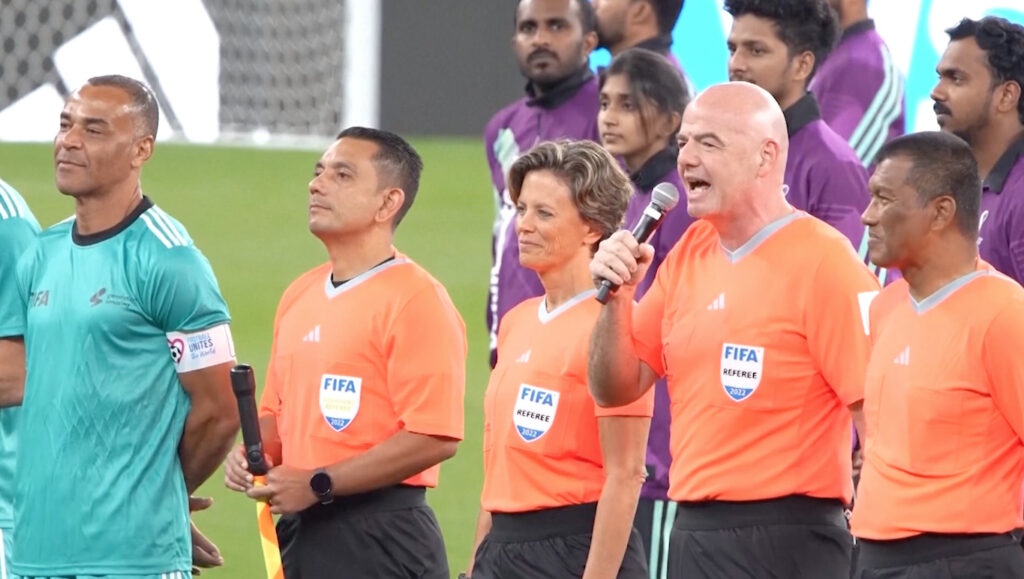 จานนี อินฟานติโน ประธานสหพันธ์ฟุตบอลนานาชาติ หรือฟีฟ่า ลงทำหน้าที่เป็นผู้ตัดสินกิตติมศักดิ์ในฟุตบอลนัดพิเศษ ที่อัล ธูมามา สเตเดียม ระหว่างตำนานนักเตะระดับโลก ฟีฟ่า เลเจนท์ พบแรงงานในกาตาร์ที่ก่อสร้างสนามในศึกฟุตบอลโลก 2022 โดยฟีฟ่า เลเจนท์ นำทีมโดย คาฟู แบ็กขวาทีมชาติบราซิลชุดแชมป์โลก 1994 และ 2002, นูโน โกเมส อดีตดาวยิงทีมชาติโปรตุเกส, อเลสซานโดร เดล ปิเอโร ดาวยิงทีมชาติอิตาลี ชุดแชมป์โลก 2006 และยูริ จอร์เกฟฟ์ ดาวยิงทีมชาติฝรั่งเศสชุดแชมป์โลกปี 1998 นัดนี้จัดขึ้นเพื่อขอบคุณแรงงานที่ทำหน้าที่อย่างหนัก โดยมีผู้ชมมากกว่า 5,000 คน สำหรับฟุตบอลโลก 2022 กาตาร์ถูกกดดันและวิจารณ์อย่างหนักจากนานาชาติกับการใช้แรงงานข้ามชาติจนมีผู้เสียชีวิตเป็นจำนวนมาก .-สำนักข่าวไทย