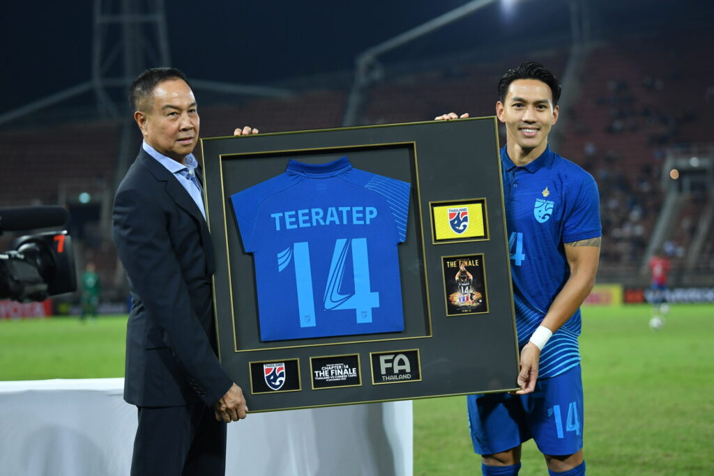 ธรรมศาสตร์ รังสิต 15 ธ.ค. – “ลีซอ” ธีรเทพ วิโนทัย กองหน้าทีมชาติไทยวัย 37 ปี ลงเตะเกมเกียรติยศนัดอำลาในนามทีมชาติไทย เกมอุ่นเครื่อง ไทย พบ ไต้หวัน