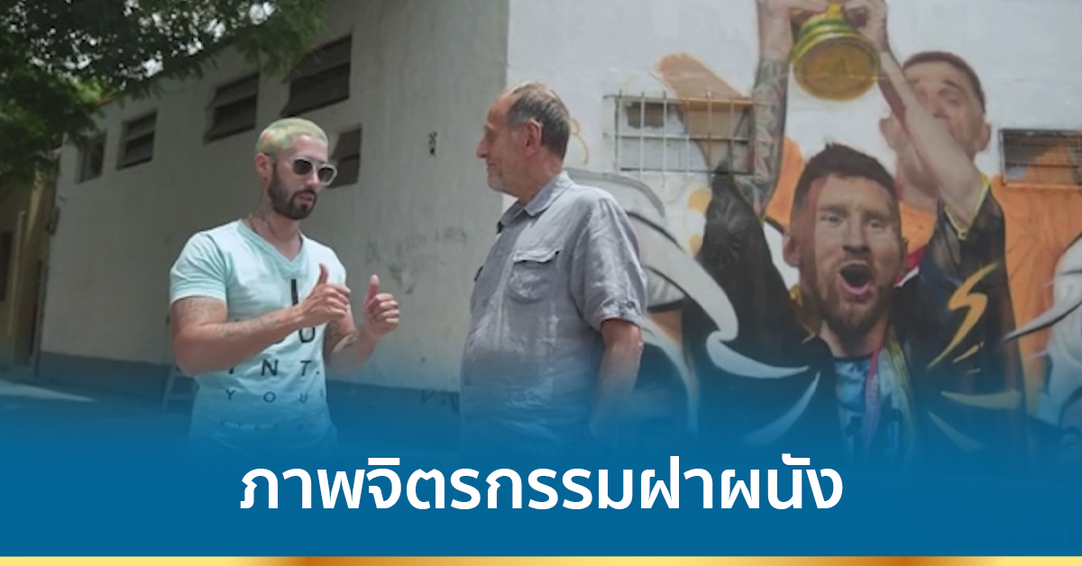 อาร์เจนตินา 23 ธ.ค.- ควันหลงหลังจาก “ฟ้า-ขาว” อาร์เจนตินา คว้าแชมป์ฟุตบอลโลกสมัยที่ 3 ศิลปินได้วาดภาพจิตรกรรมฝาผนัง เพื่อบันทึกช่วงเวลาที่ “ลิโอเนล เมสซี” ชูถ้วยแชมป์โลก
