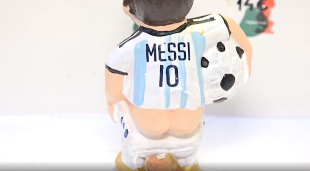 ส่วนบรรยากาศเทศกาลคริสต์มาส ที่กาตาลุนญา แคว้นทางตะวันออกของประเทศสเปน ที่ร้านค้าแห่งหนึ่ง มีตุ๊กตาเซรามิกรูปเมสซี ถอดกางเกง นั่งยองๆ วางจำหน่าย เพื่อให้เข้ากับช่วงที่ เมสซี อดีตนักเตะของสโมสรบาร์เซโลนา นำทีมชาติอาร์เจนตินา คว้าแชมป์ฟุตบอลโลก 2022 สำหรับโรงงานในกาตาลุนญาสร้างตุ๊กตา “คากาเน” เป็นรูปบุคคลสาธารณะถอดกางเกงมากมาย เช่น บารัค โอบามา วลาดิเมียร์ ปูติน และหนึ่งในนั้นก็มี ลิโอเนล เมสซี เดิมทีตุ๊กตา “คากาเน” จะเป็นรูปชาวนานั่งยองๆ และถอดกางเกงออก ได้ถูกนำมาใช้เป็นสัญลักษณ์ ความหวัง และความรุ่งเรือง ในช่วงเทศกาลคริสต์มาส