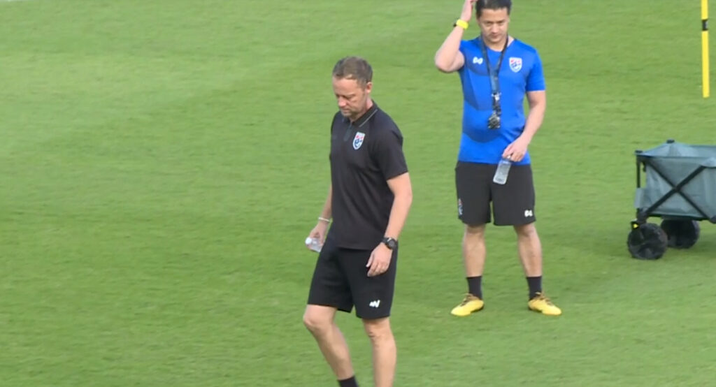 ความเคลื่อนไหว “ช้างศึก” ทีมชาติไทย ชุดใหญ่ ที่กำลังอยู่ระหว่างการแข่งขันฟุตบอลชิงแชมป์อาเซียน รายการ “เอเอฟเอฟ มิตซูบิชิ อิเล็คทริคคัพ 2022” มาโน โพลกิ้ง หัวหน้าผู้ฝึกสอน นำนักเตะลงฝึกซ้อมครั้งสุดท้าย ที่ธรรมศาสตร์ สเตเดียม นำโดย “กัปตันอุ้ม” ธีราทร บุญมาทัน และ “มุ้ย” ธีรศิลป์ แดงดา เพื่อเตรียมลงสนามนัดที่ 2 รอบแรก กลุ่มเอ พบ ฟิลิปปินส์ พรุ่งนี้ (26 ธ.ค.65) โดยการฝึกซ้อมครั้งนี้ใช้เวลาประมาณ 1 ชั่วโมง 30 นาที เน้นที่การทบทวนการเล่นและวางแท็คติกก่อนเจอฟิลิปปินส์ สำหรับผลงานนัดแรก ไทย บุกเอาชนะ บรูไน มา 5-0 ขณะที่ฟิลิปปินส์ ชนะ 1 แพ้ 1 โดยเพิ่งชนะบรูไนมา 5-1