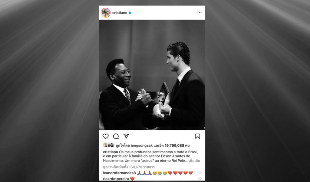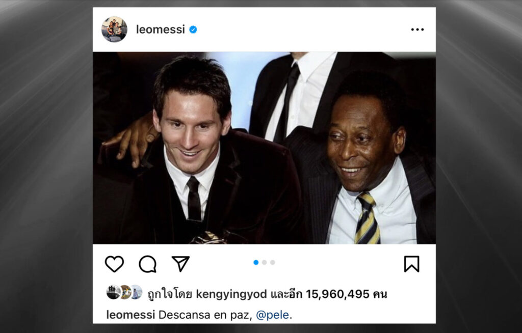 บราซิล 30 ธ.ค.-นักฟุตบอลดังร่วมโพสต์อินสตาแกรม แสดงไว้อาลัยการจากไปของ เปเล่ อดีตตำนานนักฟุตบอลทีมชาติบราซิลที่เสียชีวิตด้วยวัย 82 ปี