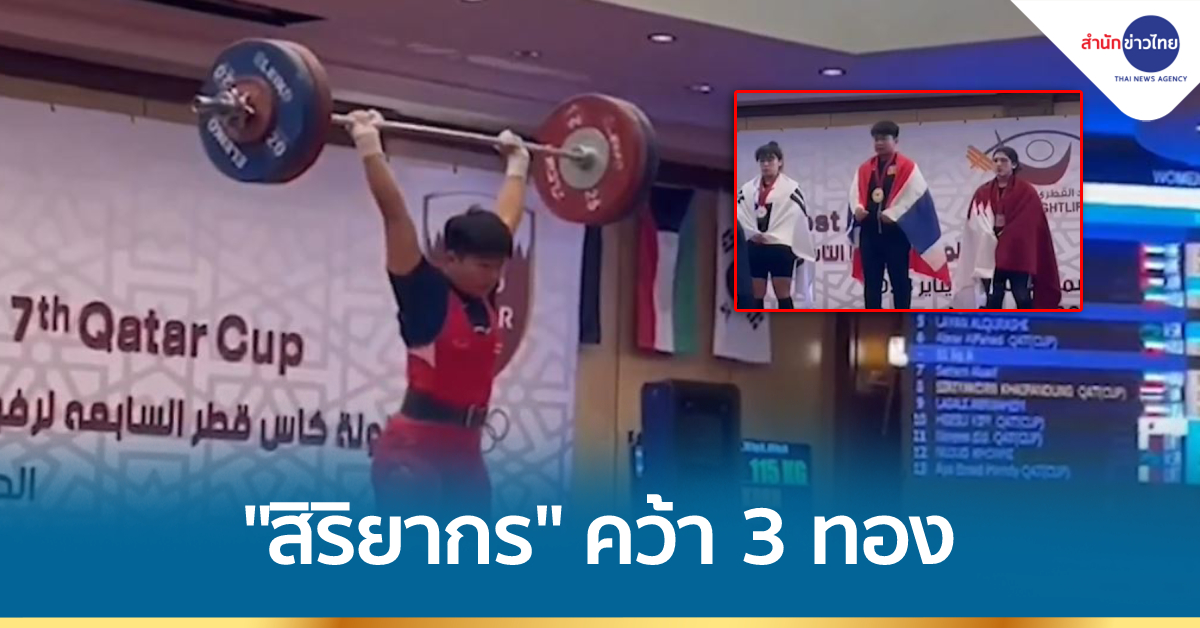 กาตาร์ 3 ม.ค. – สิริยากร ไขพันดุ จอมพลังสาวทีมชาติไทย กวาด 3 เหรียญทอง รุ่น 81 กิโลกรัมหญิง ศึกยกน้ำหนัก “กาตาร์ คัพ” ที่ประเทศกาตาร์