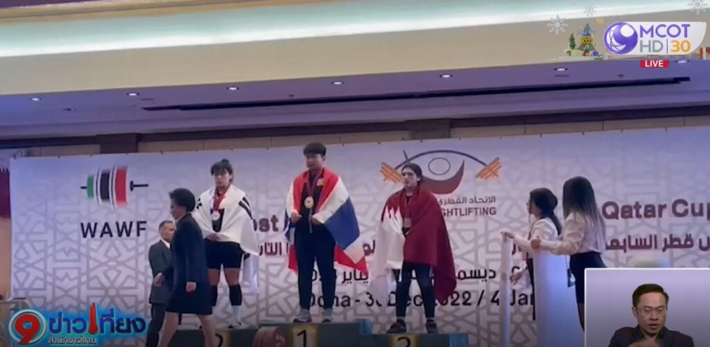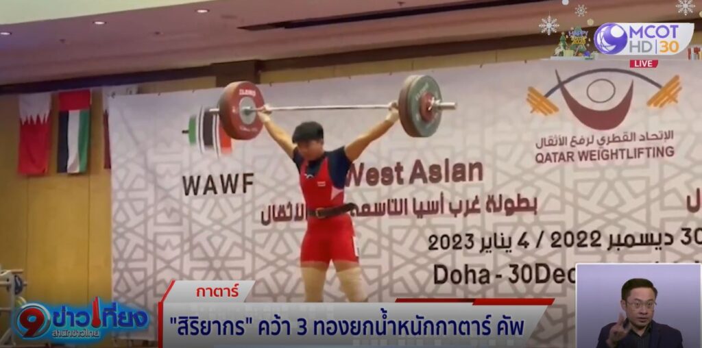การแข่งขันยกน้ำหนัก รายการ “กาตาร์ คัพ” ครั้งที่ 7 ระหว่างวันที่ 30 ธันวาคม 2565-4 มกราคม 2566 ที่กรุงโดฮา ประเทศกาตาร์ หลังจาก สุรจนา คำเบ้า คว้า 3 เหรียญทอง รุ่น 49 กิโลกรัมหญิง