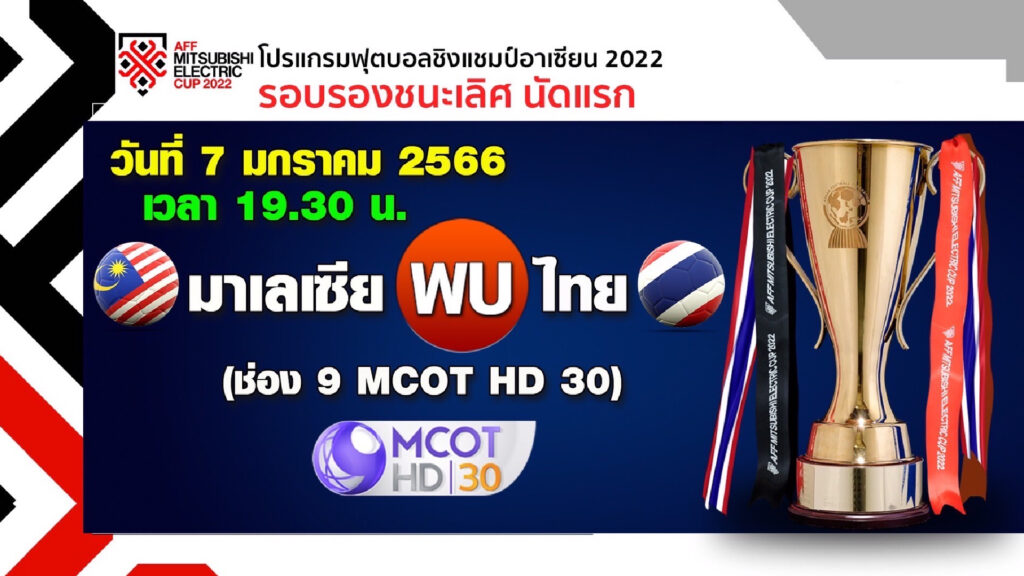 7 ม.ค. – “ช้างศึก” ปรับทัพชน “เสือเหลือง” รอบตัดเชือก นัดแรก ฟุตบอลชิงแชมป์อาเซียน 2022 ที่สนามบูกิต จาลิล ค่ำนี้ ช่อง 9 MCOT HD กด 30 ถ่ายทอดสดให้ชมถึงบ้าน