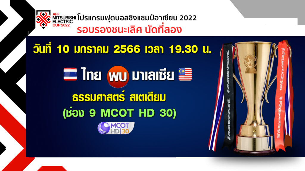 เวลา 19.30 น. ไทย – มาเลเซีย ที่ธรรมศาสตร์ สเตเดียม ช่อง 9 MCOT HD 30 ถ่ายทอดสด