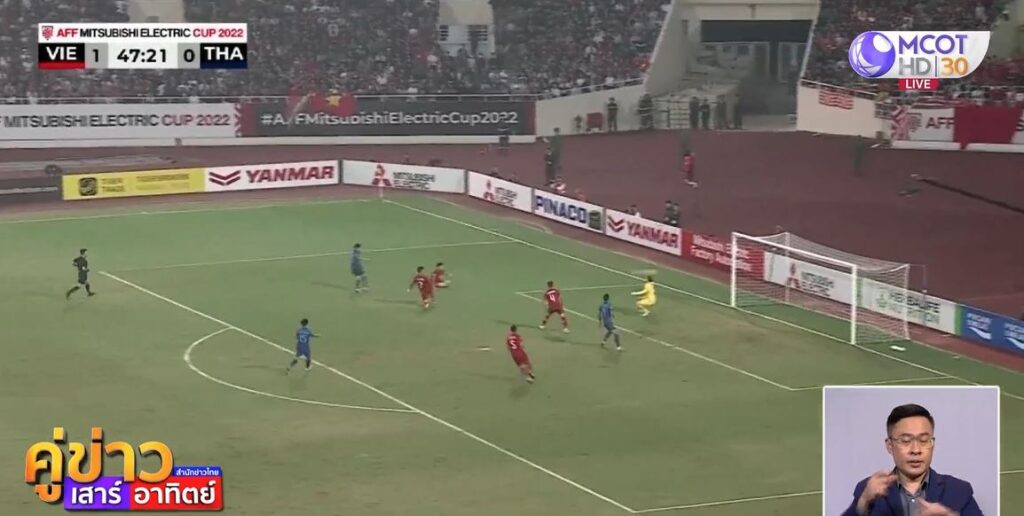 ฟุตบอลชิงแชมป์อาเซียน “เอเอฟเอฟ มิตซูบิชิ อิเล็คทริค คัพ 2022” รอบชิงชนะเลิศ นัดแรก ทีมชาติเวียดนาม พบ ทีมชาติไทย ที่สนามมีดินห์ สเตเดียม กรุงฮานอย ประเทศเวียดนาม เกมนี้ทีมไทยปรับทัพ 3 ตำแหน่ง โดยธีรศิลป์ แดงดา ดาวซัลโว มีชื่อเป็นตัวสำรอง
