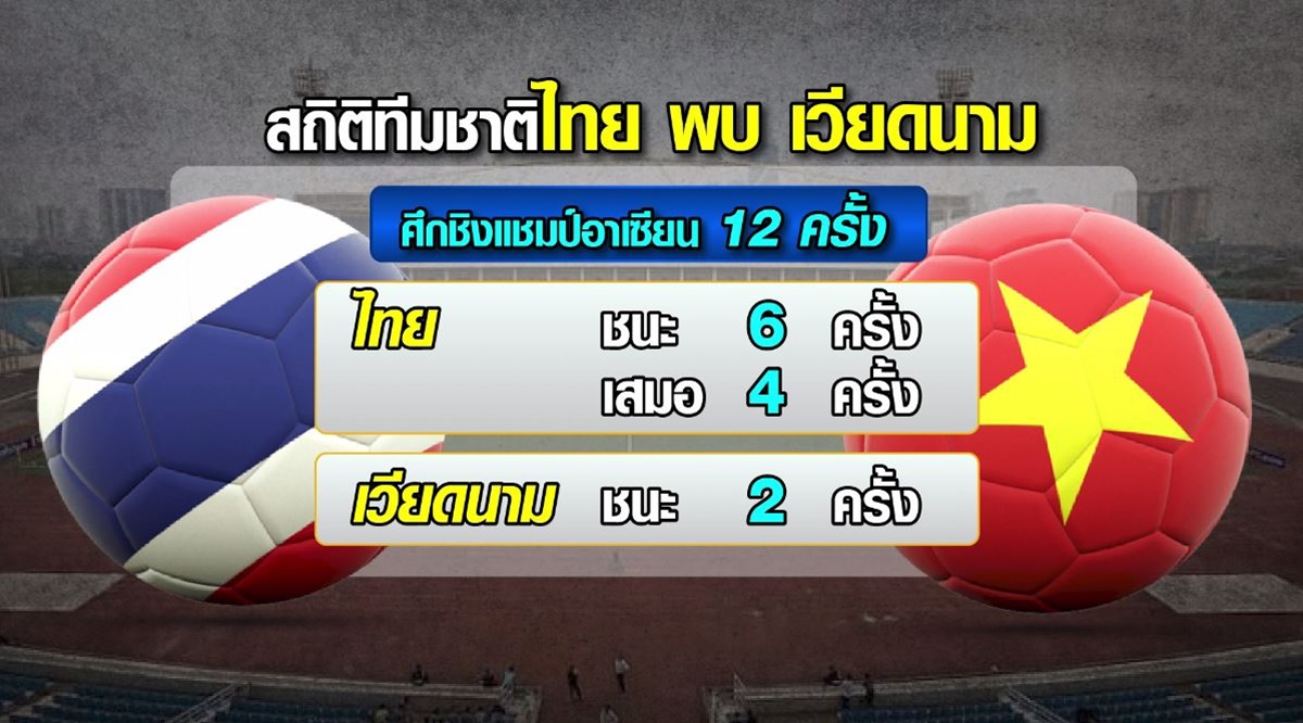 สำหรับสถิติทีมชาติไทย พบกับ เวียดนาม ในศึกชิงแชมป์อาเซียน 12 ครั้ง ทีมไทย ชนะ 6 ครั้ง เสมอ 4 ครั้ง เวียดนาม ชนะ 2 ครั้ง