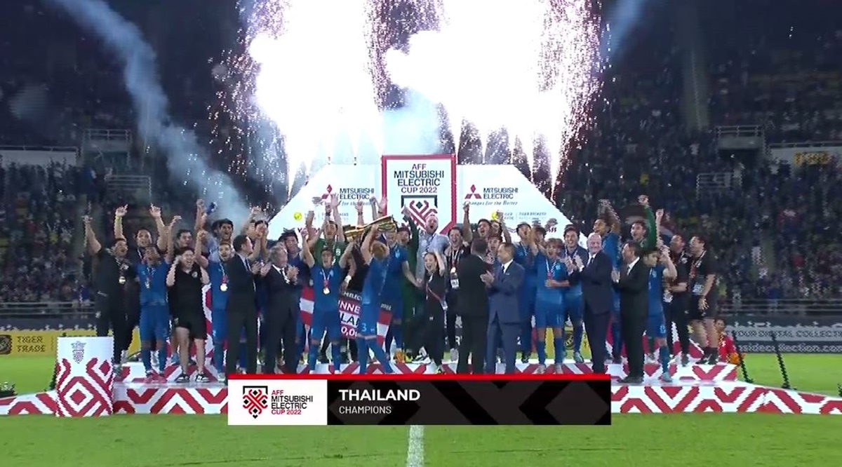 ศึกฟุตบอลชิงแชมป์อาเซียน รายการ “เอเอฟเอฟ มิตซูบิชิ อิเล็คทริค คัพ 2022” รอบชิงชนะเลิศ “ช้างศึก” ทีมชาติไทย เอาชนะ เวียดนาม 1-0 ด้วยประตูชัยของ “กัปตันอุ้ม” ธีราทร บุญมาทัน รวมผล 2 นัด ชนะ 3-2 คว้าแชมป์สมัยที่ 7 ไปครองแบบสะใจกองเชียร์ที่เข้าไปให้กำลังใจที่ธรรมศาสตร์ สเตเดียม พร้อมเงินรางวัล 300,000 ดอลลาร์สหรัฐ หรือประมาณ 10 ล้านบาท โดยพิธีมอบแชมป์ มี จานนี อินฟานติโน ประธานฟีฟ่า และ พล.ต.เคียฟ ซาเมธ ประธานสหพันธ์ฟุตบอลอาเซียน เป็นผู้มอบรางวัล