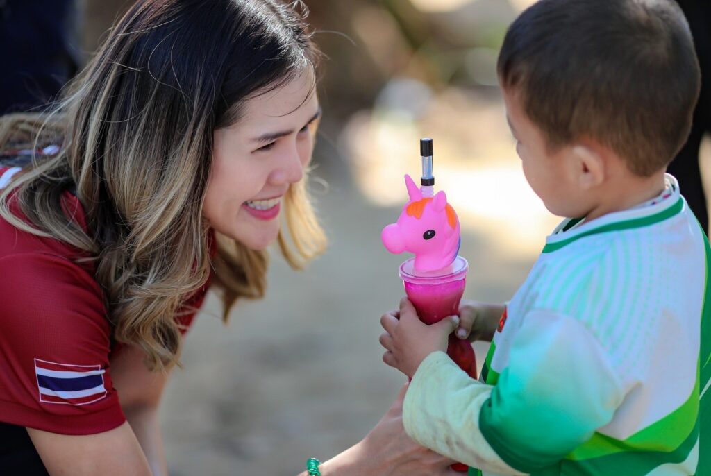 เด็กหญิงนิชดา ลีคำ (น้องซันเดย์) และนางสาวปภาวรินทร์ เปลี่ยนปู่ (น้องขวัญ) ตัวแทนนักกีฬาสโมสรกีฬาบีบีจี กล่าวว่าวันนี้ได้ทาสีสนามเด็กเล่น และสนามกีฬา เป็นงานที่ยาก แต่ก็รู้สึกสนุกมาก สนามเด็กเล่นก็สวยมีสีสัน น่าเล่นมากขึ้นจริงๆ