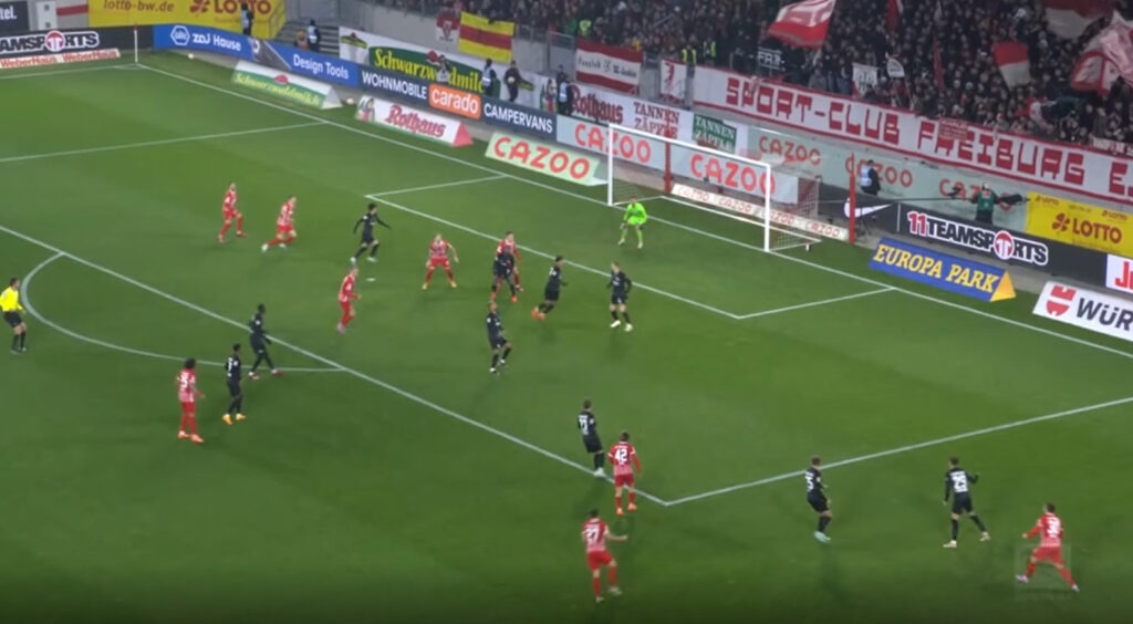 อีกคู่ ไฟว์บวร์ก เปิดสนาม ยูโรปา ปาร์ค เสมอ แฟร้งค์เฟิร์ต 1-1 โดยทีมเยือนได้ประตูขึ้นนำ 1-0 ในนาที 42 จากลูกยิงของ ร็องดาล โคโล มูอานี่ ครึ่งหลังเจ้าถิ่นได้ประตูตีเสมอได้สำเร็จในนาที 47 จากลูกโหม่งของ มัทธีอัส กินเตอร์ จบเกมแบ่งกันไปทีมละ 1 คะแนน ไฟว์บวร์ก มีเพิ่มเป็น 31 แต้ม จาก 17 นัด รั้งอันดับ 6 ส่วน ไอน์ทรัค แฟรงค์เฟิร์ต ตกลงมาอยู่อันดับ 4 ของตาราง มี 31 คะแนนเท่ากัน