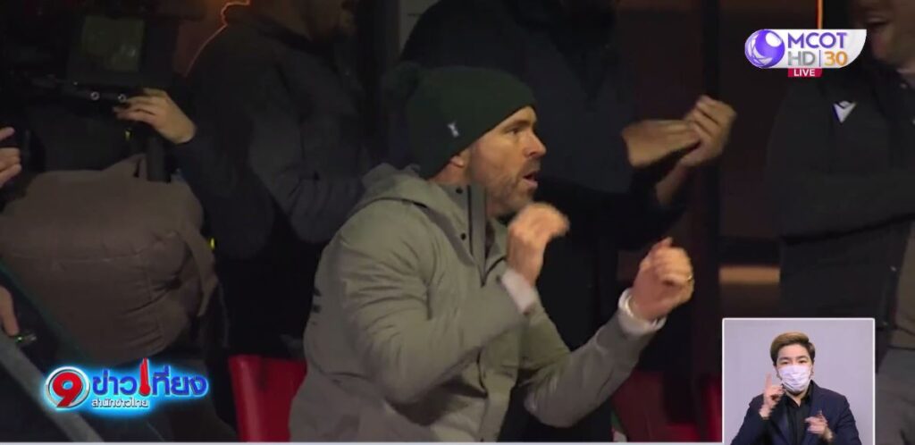 ตลอดเกมนี้ ไรอัน เรย์โนลด์ ดาราฮอลลีวูดชื่อดังจากภาพยนต์เรื่อง เดดพูล ที่เป็นเจ้าของทีมเร็กซ์แฮม ที่เข้ามาชมและเชียร์นักเตะของเขาในนัดนี้ ได้แสดงความดีใจและสะใจในจังหวะที่นักเตะทำประตูได้ หลังจบเกมลงสนามโบกมือขอบคุณแฟนบอล. – สำนักข่าวไทย