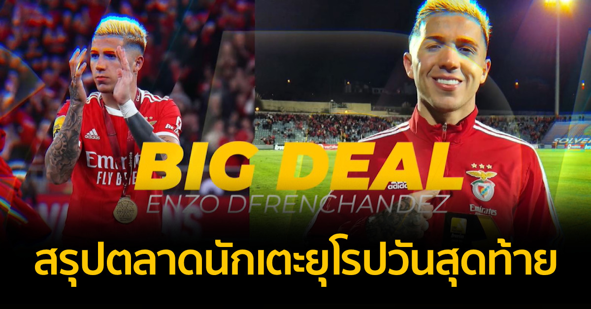 ตลาดซื้อขายนักเตะช่วงหน้าหนาวได้ปิดตัวลงอย่างเป็นทางการเมื่อช่วงเช้าที่ผ่านมา ซึ่งมีการย้ายทีมที่น่าสนใจเกิดขึ้นหลายดีลก่อนตลาดซื้อขายปิดลงเริ่มจาก ทีมสิงโตน้ำเงินคราม เชลซี คว้าตัว เอ็นโซ เฟร์นานเดซ กองกลางดาวรุ่งวัย 22 ปี ทีมชาติอาร์เจนตินา ชุดแชมป์โลก 2022 จากเบนฟิกา ในลีกโปรตุเกส มาร่วมทีมด้วยสัญญา 8 ปีครึ่ง จนถึงเดือนมิถุนายนปี 2031 พร้อมค่าตัวเป็นสถิติใหม่ของเกาะอังกฤษ 107 ล้านปอนด์ หรือประมาณ 4,300 ล้านบาท ทำลายสถิติเดิม 100 ล้านปอนด์ของ แจ็ค กรีลิช ที่ย้ายจากแอสตัว วิลล่าไป แมนเชสเตอร์ ซิตี้ เมื่อปี 2021